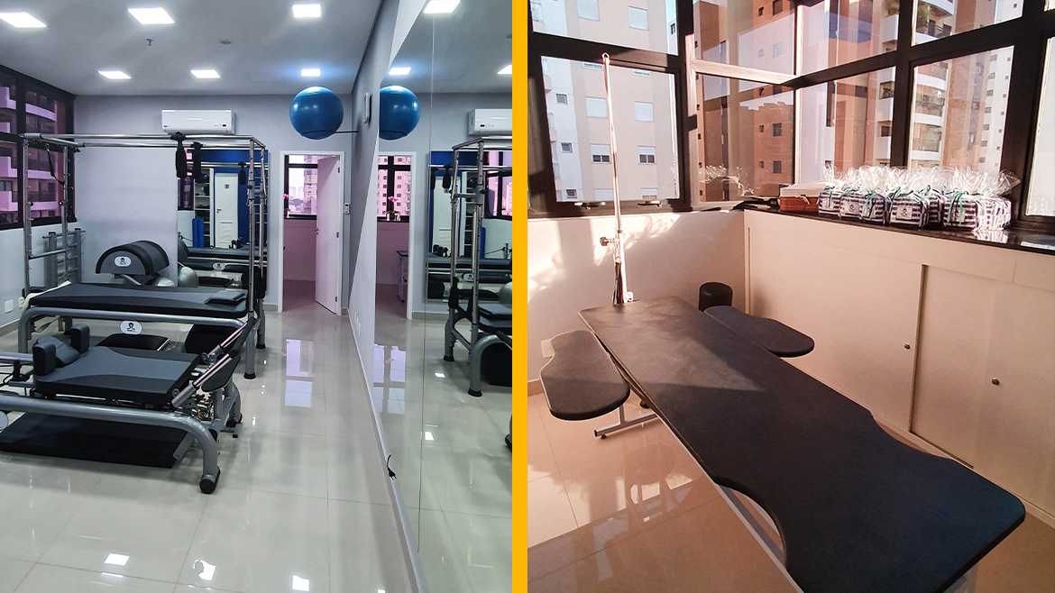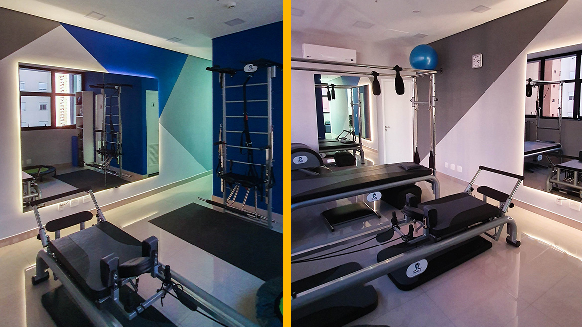 Apesar do programa simples, tivemos.o desafio de manter a fluidez dentro do espaço pois os aparelhos de pilates são muito grandes precisam de circulação mínima entre eles para melhor desempenho dos exercícios!